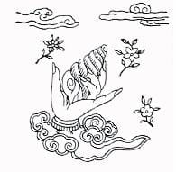 26. To invite all Celestial Deities, and kind Genies, pray to the hand holding the precious conch.