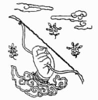 36. To become a royal officer to to have a promotion, pray to the hand holding a precious bow. Mantra: An A Ta Vi, Le, Tat Pha Ha.
